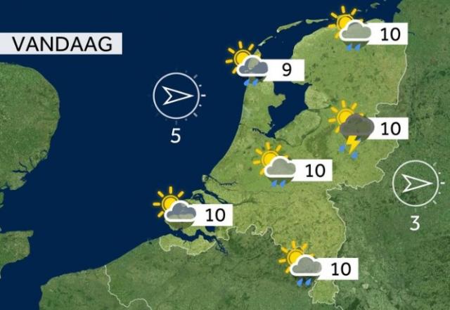 Eerst het weer: vandaag komt het vooral in het oosten tot buien, waarbij onweer en hagel mogelijk zijn. Vanmiddag wordt het vaker droog met een afwisseling van wolken en zon. De temperatuur komt uit rond de 10 graden.