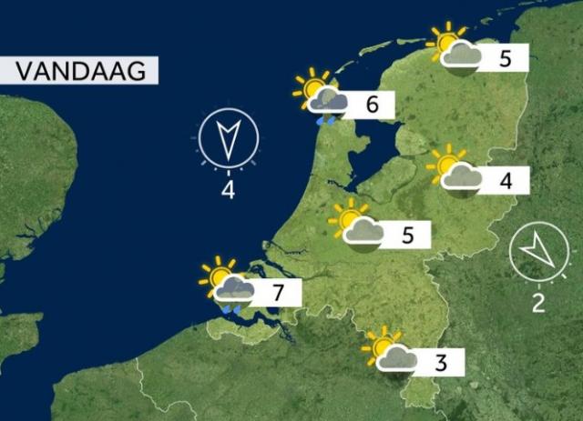 Eerst het weer: Vandaag is het lange tijd zonnig winterweer, alleen in de kustgebieden komt het tot een enkele bui. Later volgt vanuit het noorden meer bewolking. Het wordt tussen de 3 en 6 graden met een matige noordenwind.